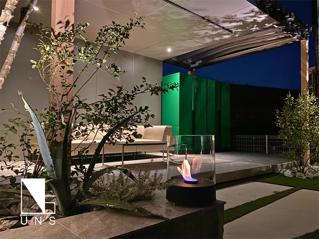 グリーンをベースにアースカラーで纏めた上品なお庭は、ついついご友人やご家族を招きたくなる素敵な空間に仕上がりました。