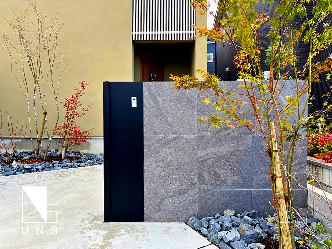素材・色味・ボリュームを建築を引き立てるための要素と考え、「外構単体で主張しない」ことを設計の軸とした作品です。